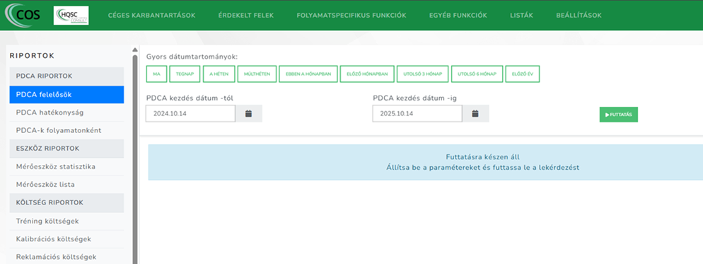 Egy példa a változások közül: A PDCA riportok esetében a rendszer mostantól nem a határidőt, hanem a „PDCA kezdés dátumát” veszi alapul.
